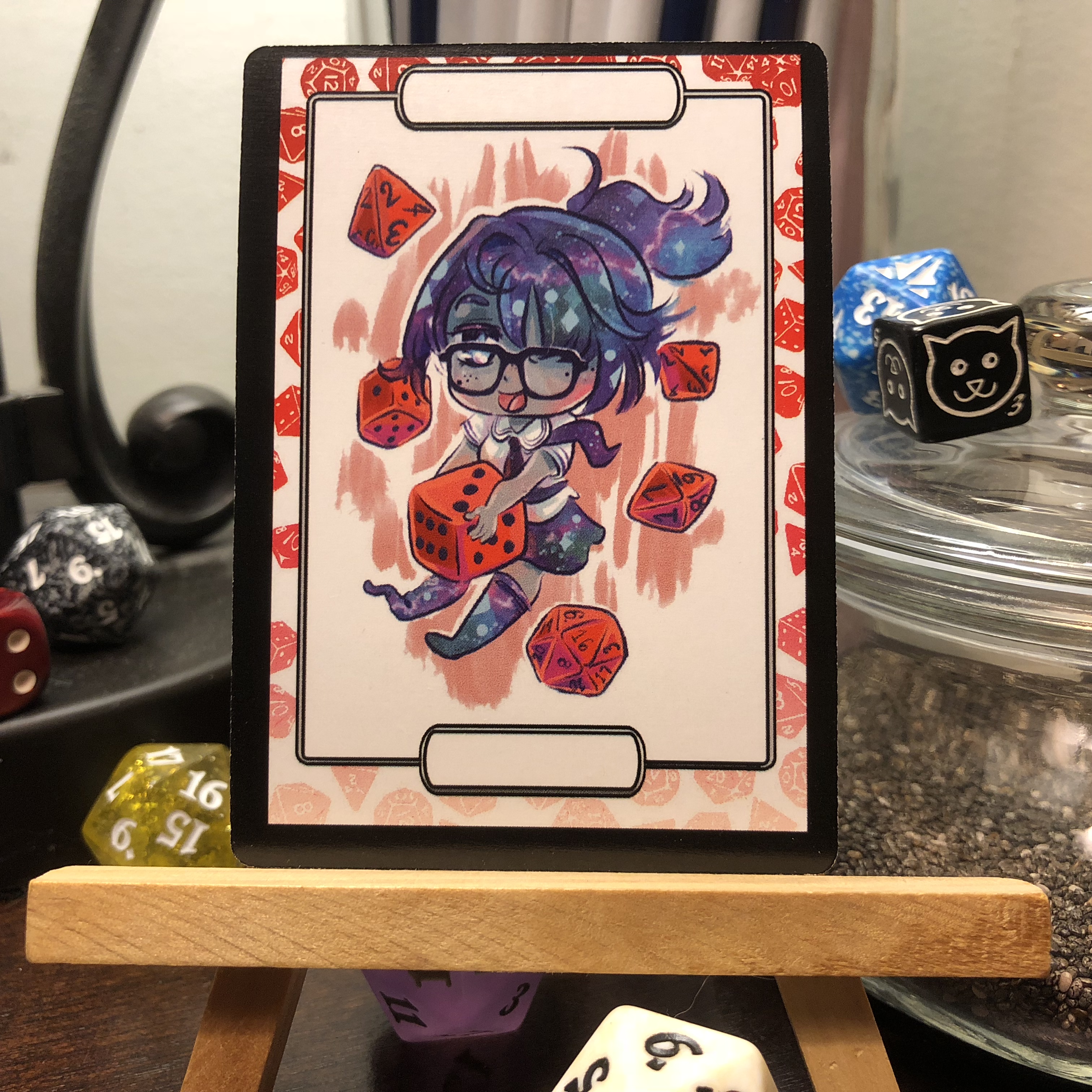 This token is of a Dice Girl (Red) that can be used as a creature token or as a mana counter.