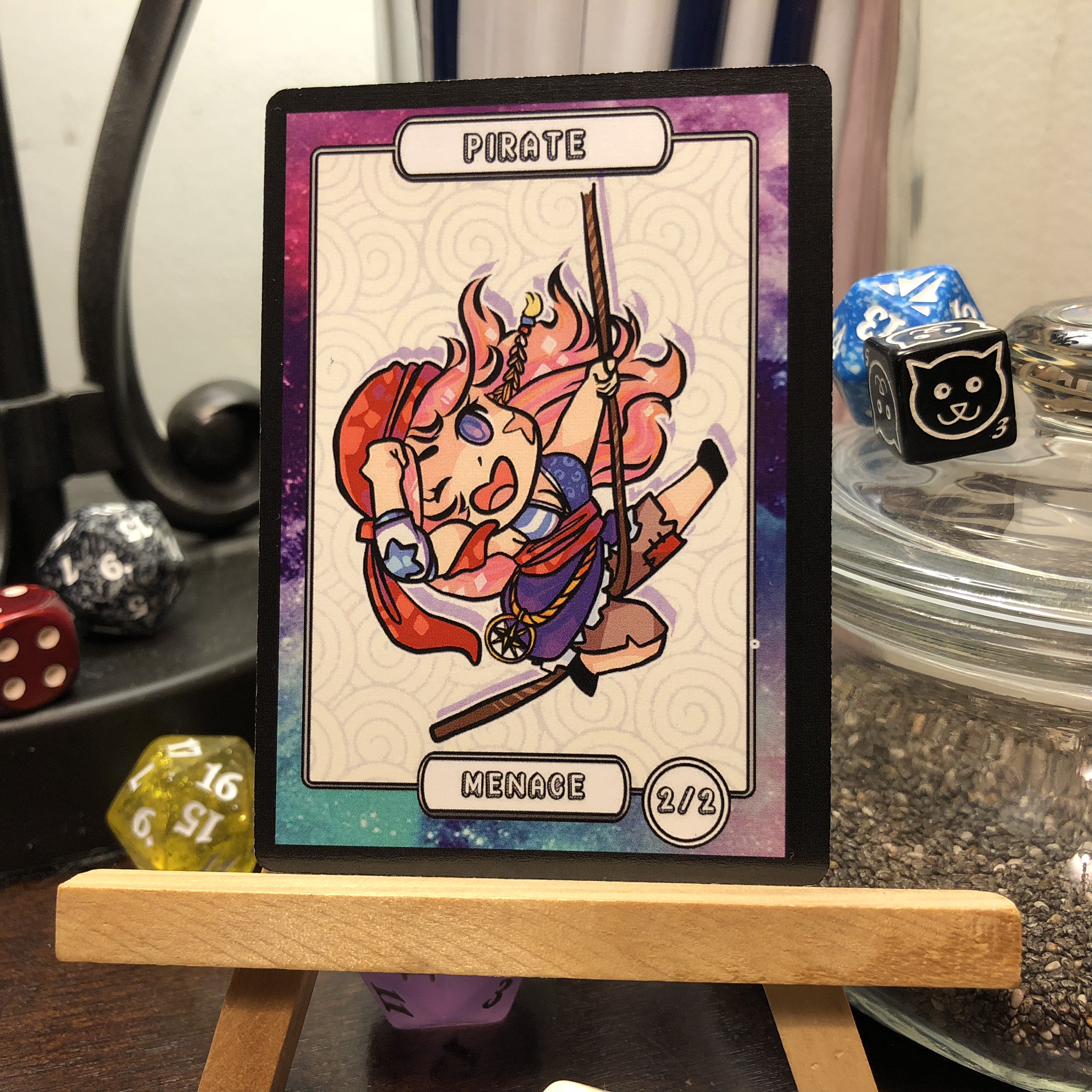 This token is of a Pirate to be used with the game Magic the Gathering.