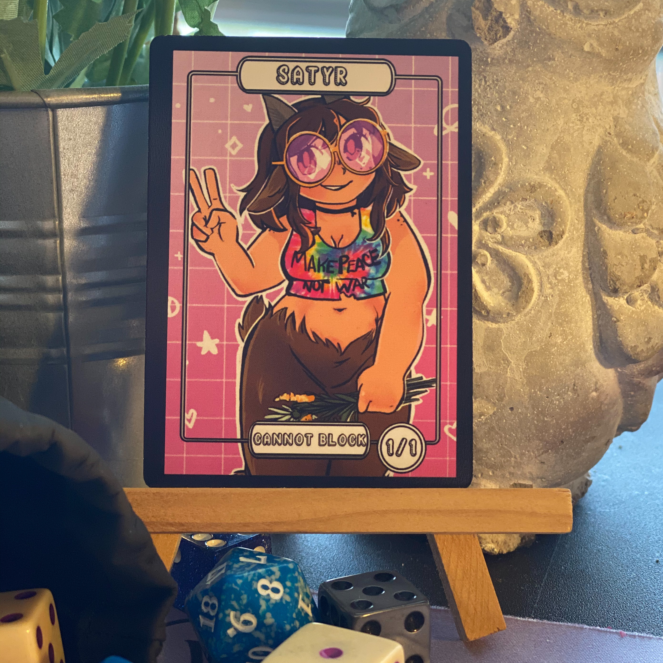 This is a Satyr token to be used for the game Magic the Gathering.