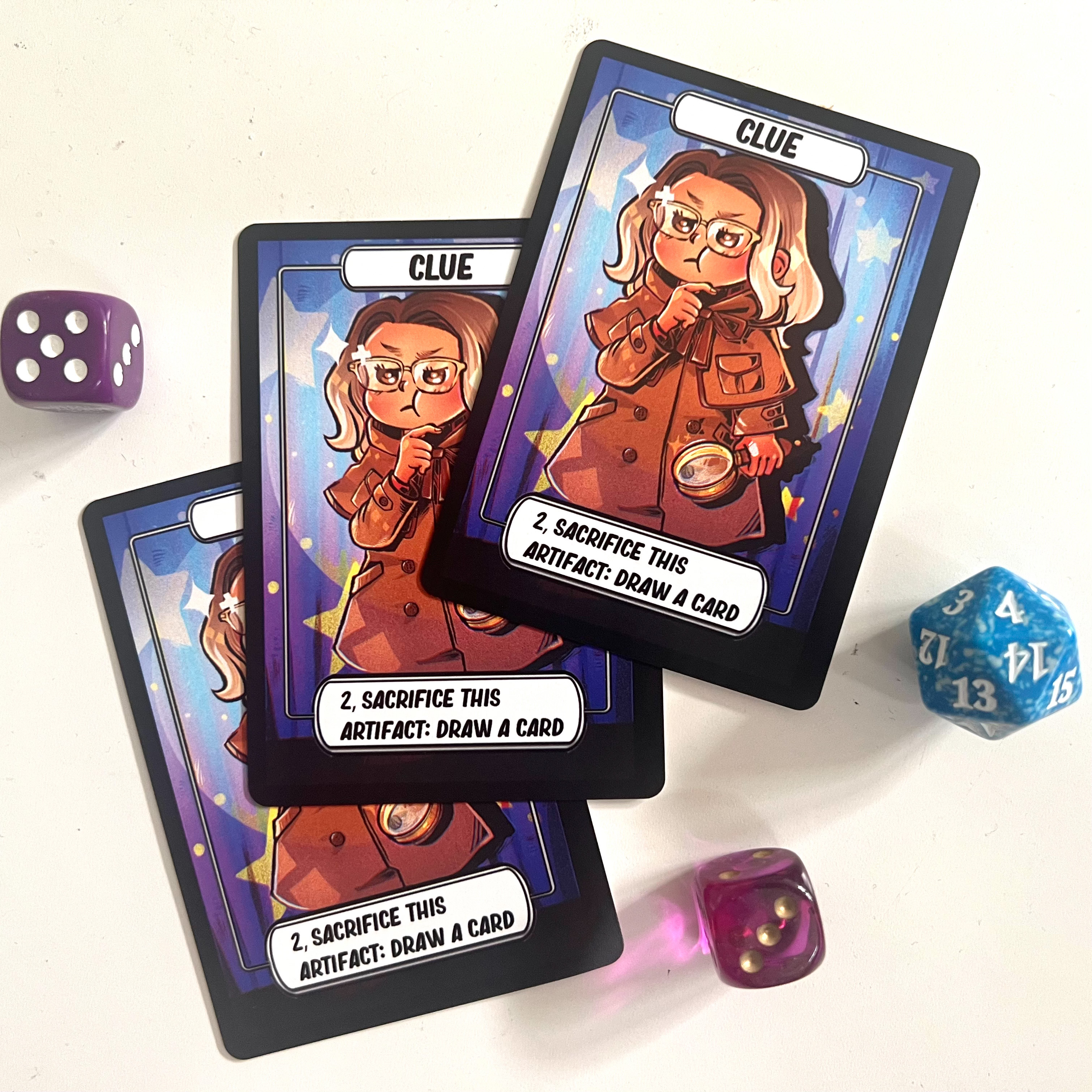 This is a token of Magic the Gathering player Rebell to be used as a clue token.