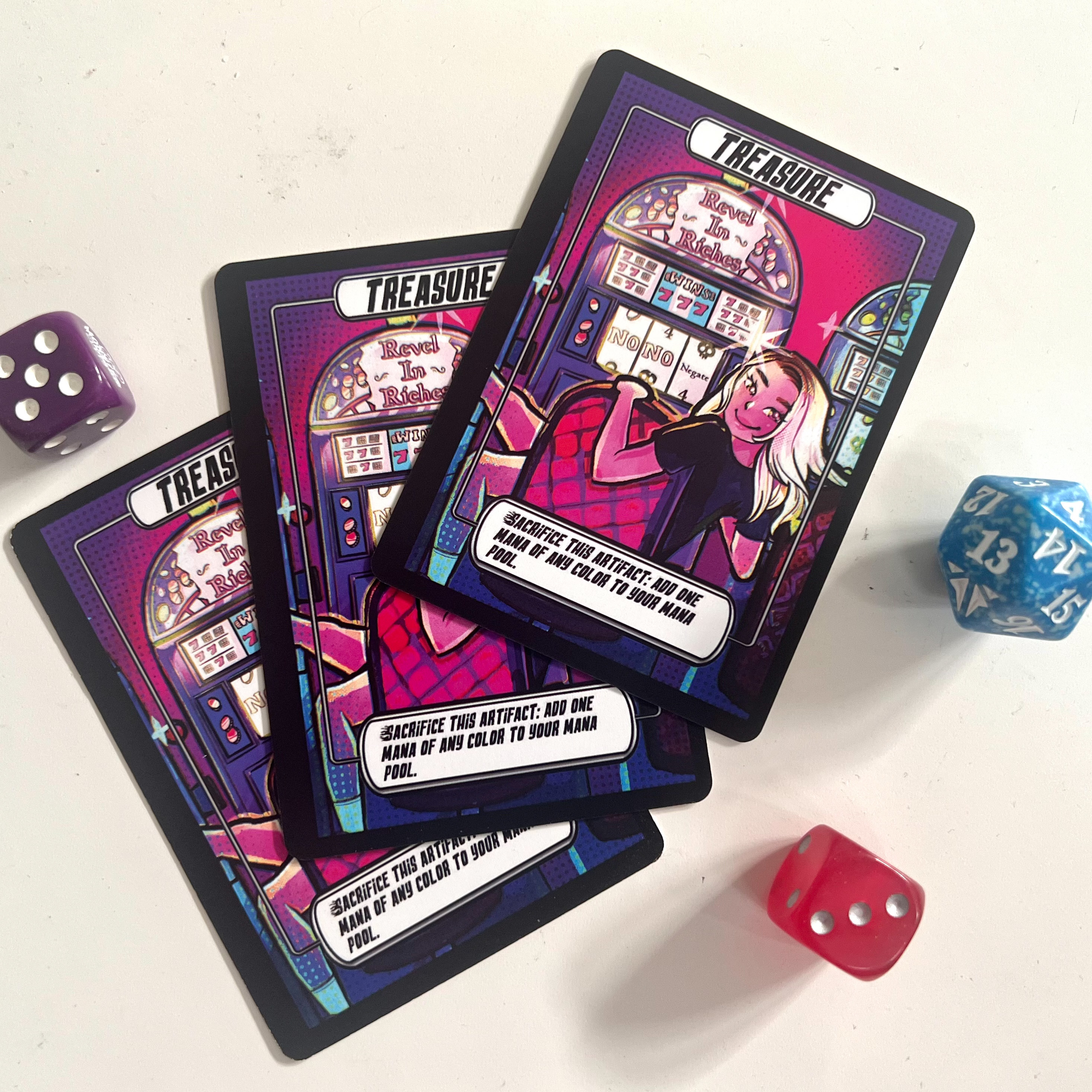 This is a token of Magic the Gathering player Rebell to be used as a treasure token.